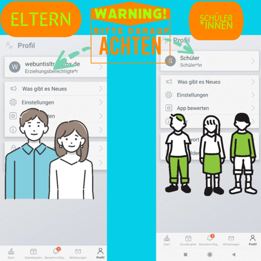 Registrieren Sie sich als Eltern stets mit der E-Mail-Adresse, die Sie bei der Schulanmeldung auf dem Datenblatt angegeben haben.